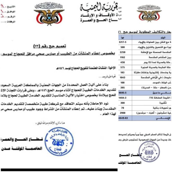 إعفاء وكالات التفويج من ترشيح الأطباء المرافقين للحجاج اليمنيين
