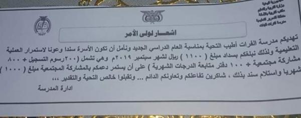 مليشيات الحوثى تجبر طلاب المدارس على دفع ألف ريال شهريا