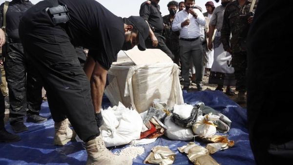 قوات العمالقة تضبط شحنة حبوب مخدرة قرب باب المندب