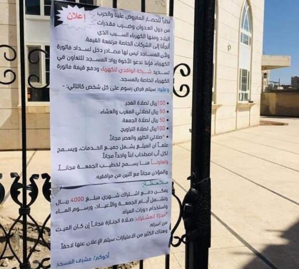 الحوثيون يفرضون رسوماً على المصلين في المساجد (صورة)