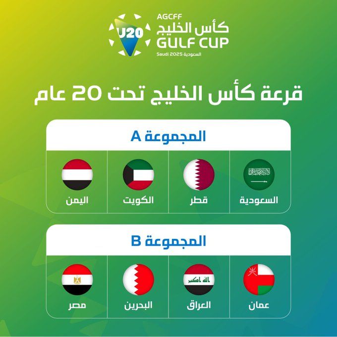 منتخبنا الأولمبي يحل في المجموعة الثانية إلى جانب العراق والإمارات وعُمان ضمن بطولة كأس الخليج.
