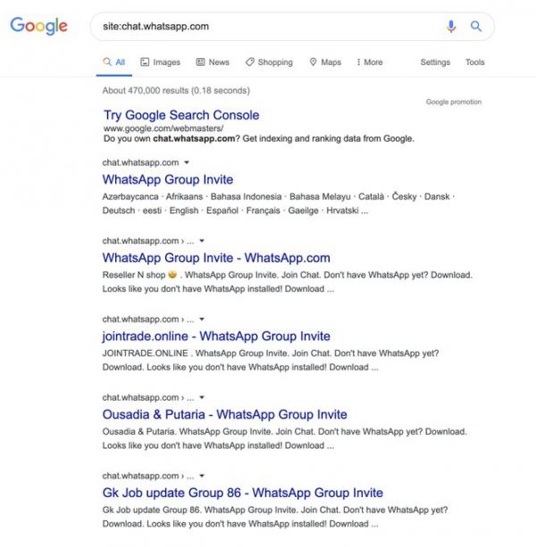 ظهور محادثات واتساب الجماعية العامة ضمن نتائج بحث جوجل