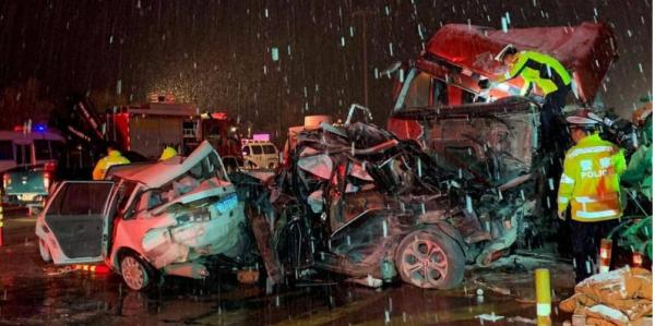 حادث مخيف.. انهار الجسر فهوت شاحنة النفط فوق القوارب