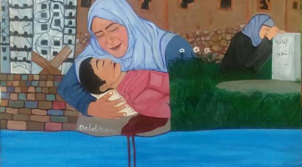 عرض 4 لوحات فنية للبيع دعماً للأسر الفقيرة بتعز
