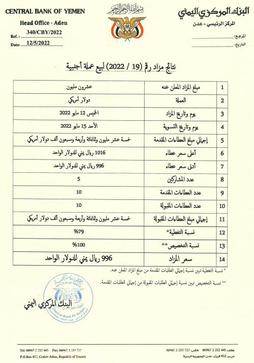البنك المركزي يعلن نتائج مزاد بسعر 966 للدولار