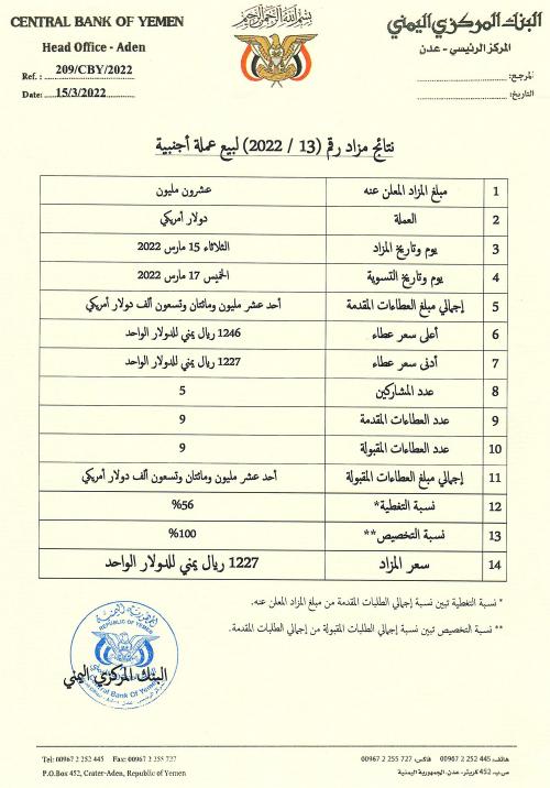 البنك المركزي يعلن نتائج مزاد جديد بسقف مرتفع لسعر الدولار