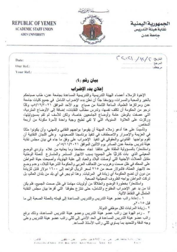 جامعتا تعز وعدن تعلن الإضراب الشامل