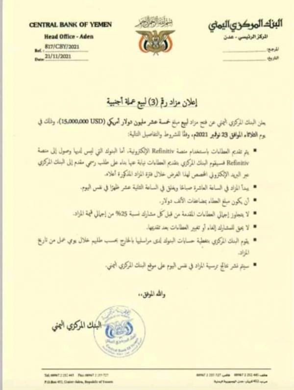 إعلان نتائج المزاد رقم 3 من بيع العملة الأجنبية