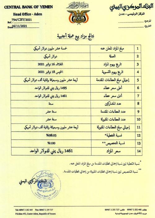 البنك المركزي يعلن نتائج المزاد الثاني لبيع العملة الأجنبية