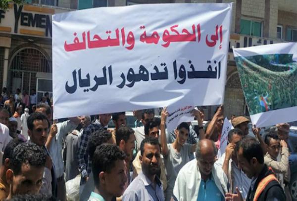 تظاهرة شعبية في تعز تنديداً بانهيار العملة الوطنية