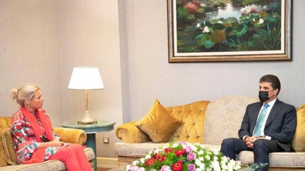 واستقبل بارزاني اليوم، الممثلة الخاصة للأمين العام للأمم المتحدة في العراق جينين هينيس بلاسخارت، وناقش معها الوضع السياسي العام في العراق، وآخر مستجدات الحوار بين حكومة اقليم كردستان والحكومة الاتحادية لحل الخلافات والقضايا العالقة بينهما.