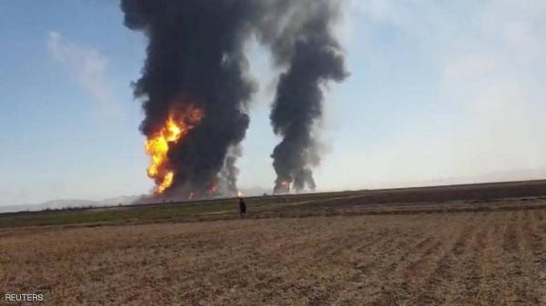 وقد ارتفعت أعمدة دخان سوداء كثيفة في سماء المنطقة بعد ''الانفجار الضخم''.