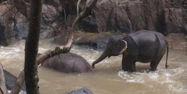 وأوضح المسؤولون أن قطيعا من الأفيال، سارع إلى محاولة إنقاذ الفيل الرضيع، قرب الطريق السريع في منطقة براشين بور، غير أن ما مجموع 6 أفيال من القطيع غرق ونفق، بينما عثر على فيلين آخرين وهما يكافحان من أجل النجاة، على حافة هاوية عند الشلال، وتمكنت السلطات من إنقاذهما، وتم التقاط فيديو للحظة نجاتهما.