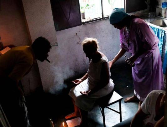 ويقول صاحب هذا المكان إنه يعالج نحو 200 مريض في الأسبوع في غرفة مضاءة بالشموع تضم سريرين ومجموعة من التماثيل الجصية التي يؤكد المعالج أنها تمثل "كيانات روحية".
