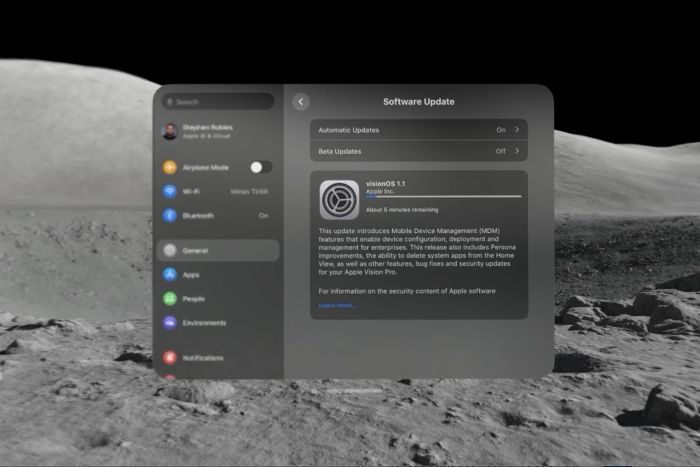 تقوم أبل بدفع تحديثات منتظمة إلى visionOS، ويتم بالفعل اختبار الإصدار التجريبي من تحديث VisionOS 1.2، ونتوقع أن يتم تقديم VisionOS 2 في يونيو مع مجموعة ميزات جديدة تمامًا.