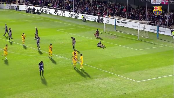 ورغم السيطرة الكاتلونية معظم أطوار الشوط الأول لم يهتدى رفاق بيكيه إلى مرمى قرطاجنة إلا في الشوط الثاني بواسطة كارليس بيريز في الدقيقة 64 مستثمرا خطئا فادحا في قلب دفاع المنافس