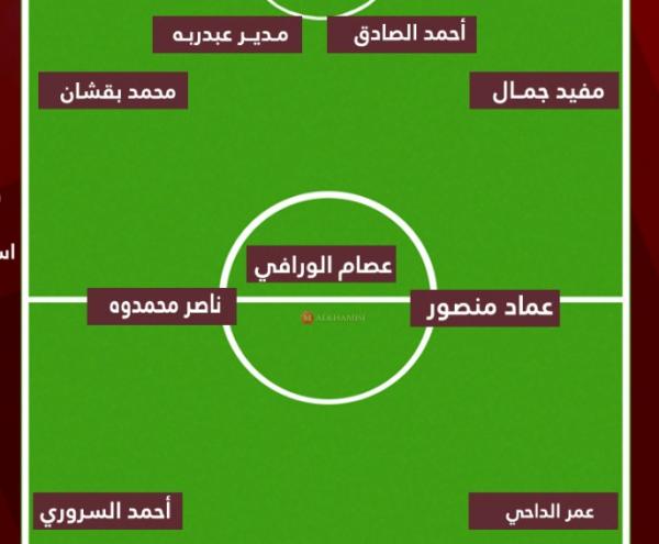 - في الهجوم احمد السروري وعمر الداحي وعبدالواسع المط