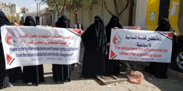 نفدت رابطة أمهات المختطفين، صباح اليوم الأحد، وقفة احتجاجية أمام مبنى المفوضية السامية بصنعاء للمطالبة بسرعة إنقاذ أبنائهن المختطفين والمخفيين قسراً من الموت تحت التعذيب.