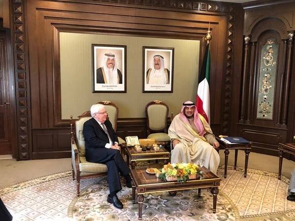 وأوضح مكتب المبعوث الاممي أن غريفيث التقى بالشيخ خالد الصباح رئيس الوزراء الكويتي، وأحمد ناصر الصباح مساعد وزير الخارجية الكويتي في لقاءين منفصلين.