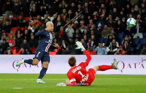 بطل العالم كليان مبابي افتتح التسجيل لنادي العاصمة الفرنسية بكرة ساقطة فوق الحارس في الدقيقة 12