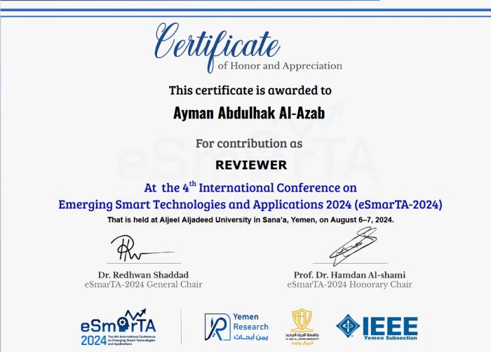 • المؤتمران الدوليّان الرابع والخامس للتقنيات الذكية الناشئة  وتطبيقاتها  (eSmarTA 2024 & 2025)