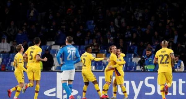 عاد برشلونة الإسباني بالتعادل من ميدان نابولي الإيطالي بهدف لمثله ضمن ذهاب ثمن نهائي دوري أبطال أوروبا
