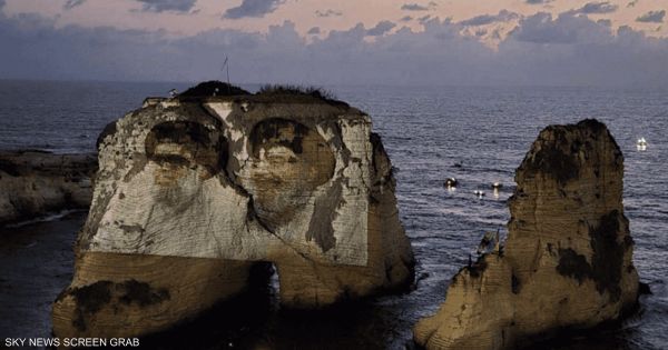 حزب الله يضيء "الروشة" بصورة نصرالله.. والنيابة العامة تتحرك