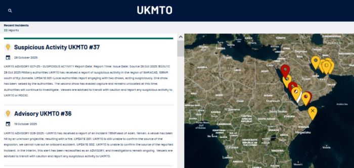 UKMTO advise vessels sailing south of Somalia to transit with caution