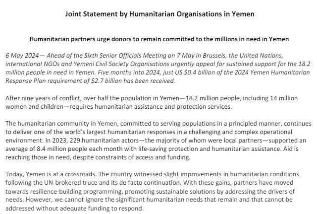 Humanitarian partners urge donors to remain committed to the millions in need in Yemen