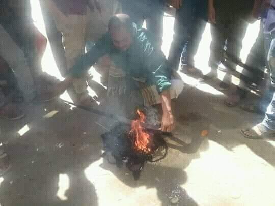 و بحسب المصادر تقوم الحملة بإحراق الأحزمة التي تجمعها من المحل، أمام المحل، وسط ترديد الصرخة الخاصة لمليشيات الحوثي.