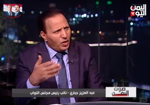وفي لقاء تلفزيوني مباشر مع قناة اليمن اليوم قال عبدالعزيز جباري انه من المفروض ان نقاتل من اجل مشروع الدولة وهذة الدولة المنشودة التي يجب ان نقاتل من اجلها، بعد ان ظلينا منذ أعوام نتقاتل من اجل مشروع لا يمت بصله ودفع اليمنيون الثمن ولازلنا في نفس المشروع.