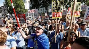 احتشد عشرات من المتظاهرين ينتمون لجماعة (أوقفوا الانقلاب) في وسط العاصمة الألمانية برلين اليوم السبت، احتجاجا على احتمال خروج بريطانيا من الاتحاد الأوروبي دون اتفاق.